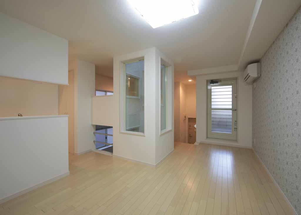 玄関と同じフロアに洋室、階段上がってリビング、キッチン、その他水廻り