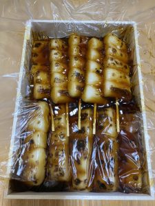 ぎっしりと美味しそうなみたらし団子が詰まっています。